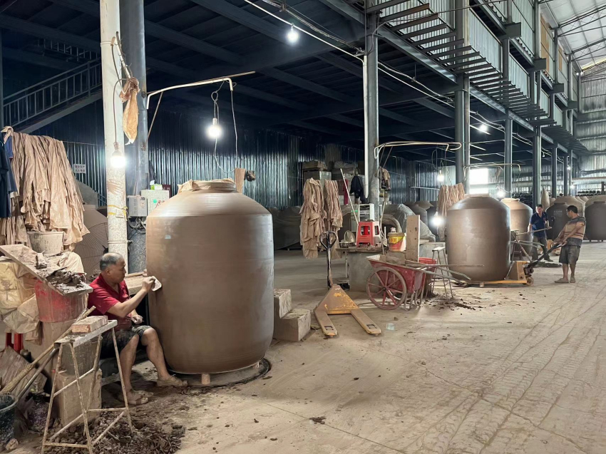 富順縣奇藝陶業有限公司成立于2021年,是制造、銷售、服務一體的生產型土陶企業。注冊資本1200萬元。位于富順縣古佛鎮鳳儀村3組,占地面積200畝。建有8條廂式窯爐,員工人數180人,年產噸壇、千斤發酵缸10萬余件。這一帶特有的天然原生態土陶礦泥,將傳統工藝與現代技術相結合,生產各類規格土陶酒壇、泡菜壇、發酵缸系列產品。產品具有不浸不漏,透氣性能好。耐酸堿,耐腐蝕,吸水率低,釉面均勻等特點。